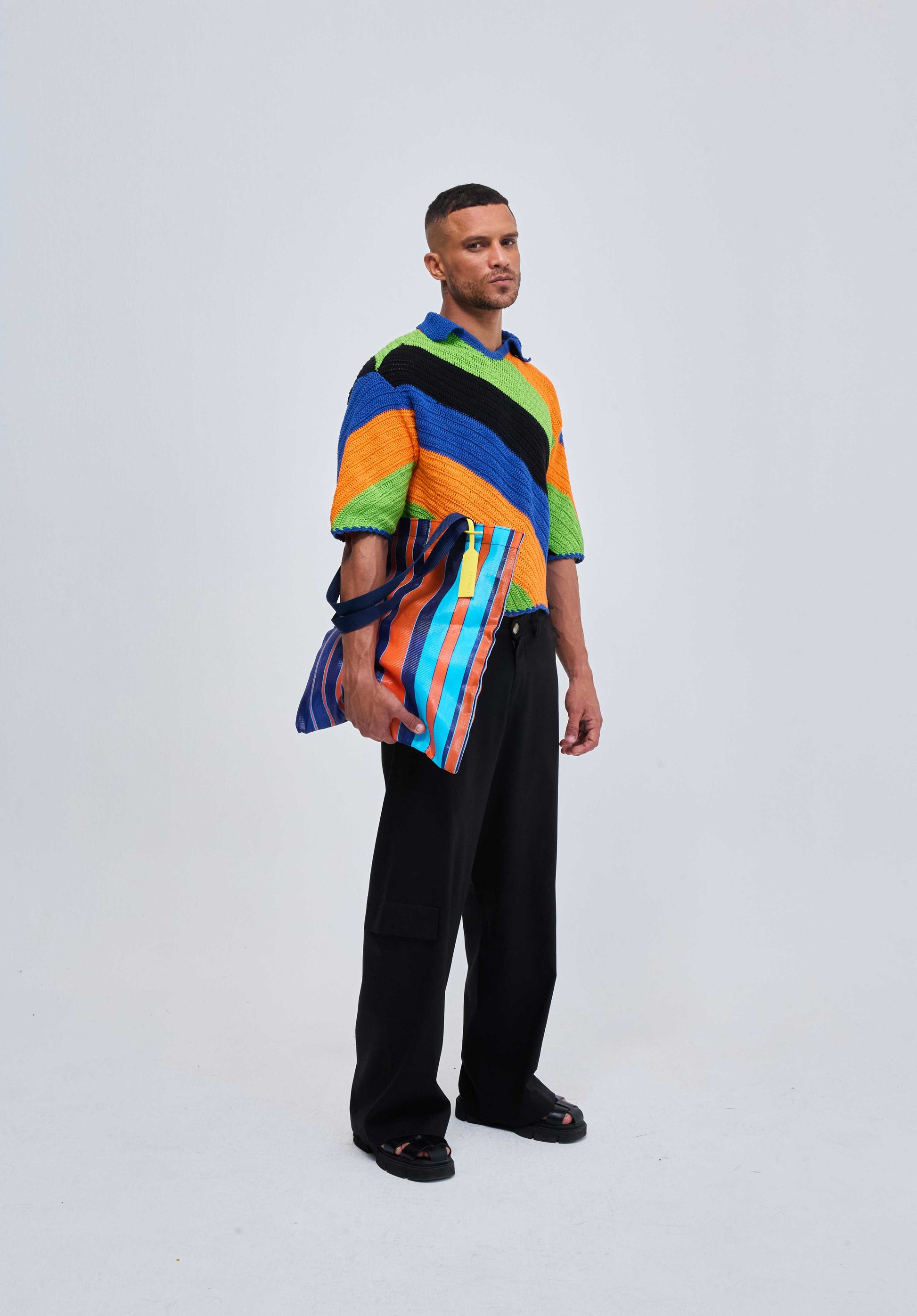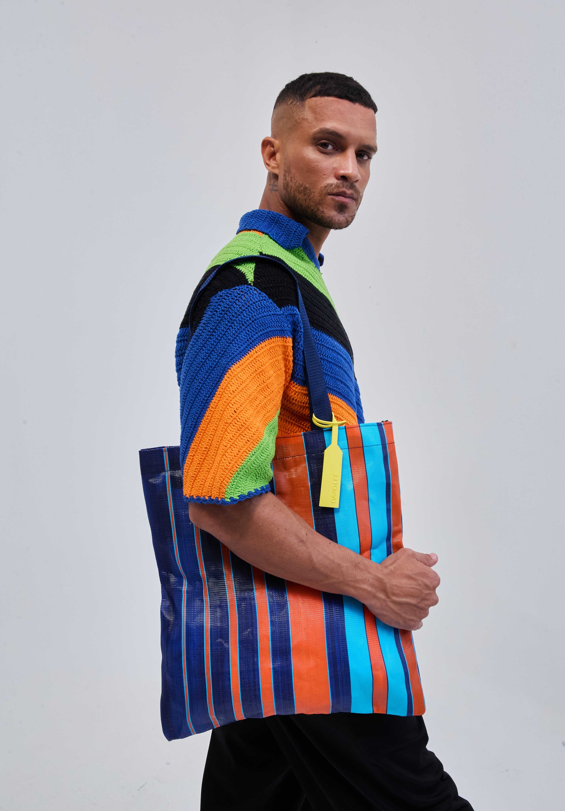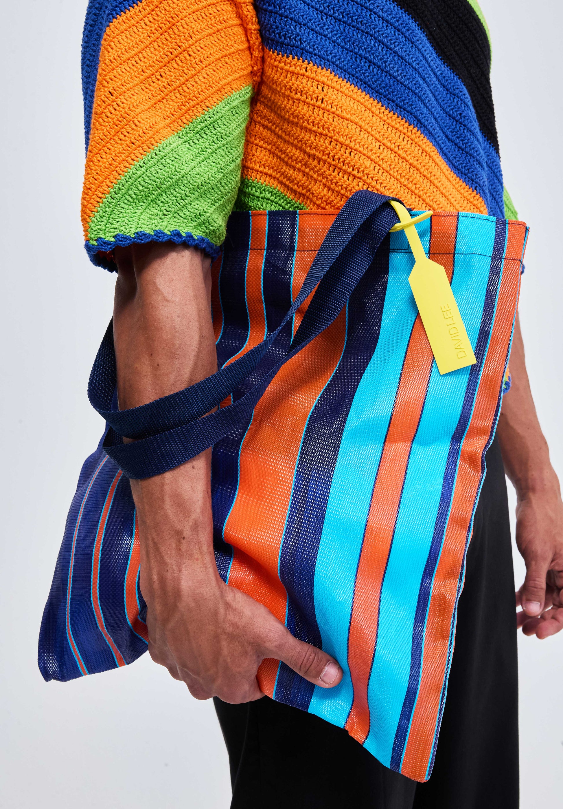 A tote bag Salt é confeccionada em tela de nylon listrada que combina três cores distintas de forma contemporânea. Possui bolso interno, zíper na abertura e suas alças são fixas.